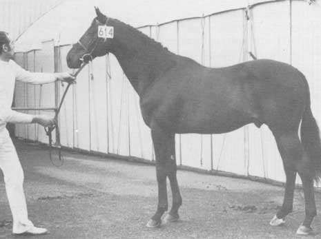 Offspring (foals) in 1973:Sufficiently good type. Good size. Some foals seem a big leggy, but given the broodmares, that is not a concern. Several foals have a poorly muscled neck with the tendency toward an under-neck. Several foals are over-built. Good walk. The hind leg steps well under the body. Some foals could have a bit more suspension in the pastern. The trot is correct but could have slightly more scope and power.