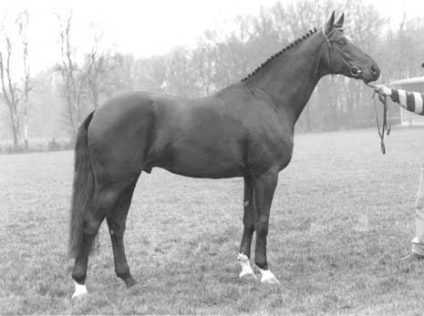 Offspring 1997The offspring are well developed, well muscled and of good riding type. The head is expressive, in some cases a little convex between the eyes. Neck and poll have good length. The poll is well muscled and well carried. The wither and shoulder are good. The back and loin have good shape and muscling. The croup has good shape with sufficient length and good muscling. The foreleg is well placed with a well-developed knee. The cannon is a little fine at times. The hindleg varies in regard to build and stance; most often a little long with a small angle, but other times rather straight. The hock should be better developed and finished. The walk is correct, big and supple. The use of the hindleg varies during the trot. In some cases it is a little slow in coming underneath and sometimes it should carry better. Some yearlings trot with good use of the hindleg and show good rise in the forehand. The use of the hindleg also varies a little in the canter.
