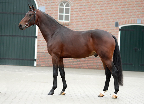 Bordeaux was the champion of the stallion selection in 's-Hertogenbosch. His sire United, who excelled in the performance test, currently competes in the small tour as an eight-year-old. United (Krack C x TCN Partout) is leaving his stamp as a breeding stallion, as evidenced by his daughters who excel in the inspections and ability tests. Bordeaux's dam is Venna, a ster mare by the keur stallion Gribaldi. Her dam Leandra M is a keur preferent sport (dres) mare by the dressage horse sire Donnerhall. Bordeaux's great-granddam Roussina is by Rousseau (Romadour II x Lugano II), out of Adone (Angelo xx out of Dodona s.Donar). Bred to Krack C, Roussina also produced the Oldenburg-approved stallion Kaiser Franz. Furthermore, Roussina is a half-sister to Nicole Uphoff's legendary dressage horse Rembrandt (s.Romadour II) and the stallions Royal Angelo I and II (s.Rosenkavalier). Adone is a full sister to the renowned dressage horses Ahlerich, under the late Dr. Reiner Klimke; and Amon, under Annemarie Sanders-Keizer.