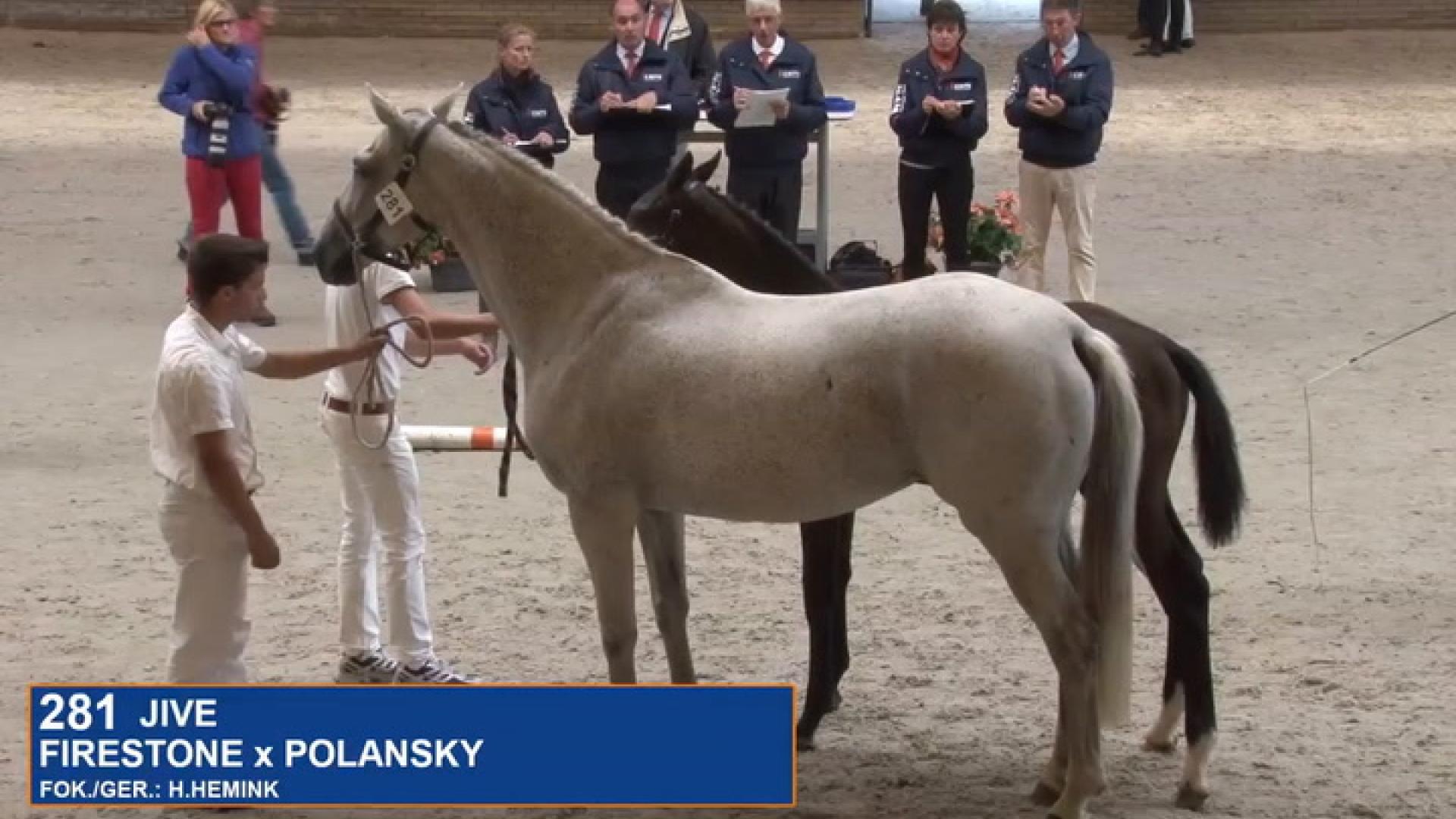 Fire showed a varied collection of foals with moderate to good development, sufficient rectangular-shaped conformation, and more than sufficient presence. The back has more than sufficient length but is dropped. The legs are correct and solid. The walk has sufficient scope. The trot has good scope. The canter is light-footed with sufficient scope.Number of offspring registered in 2014: 4 fillies and 2 colts