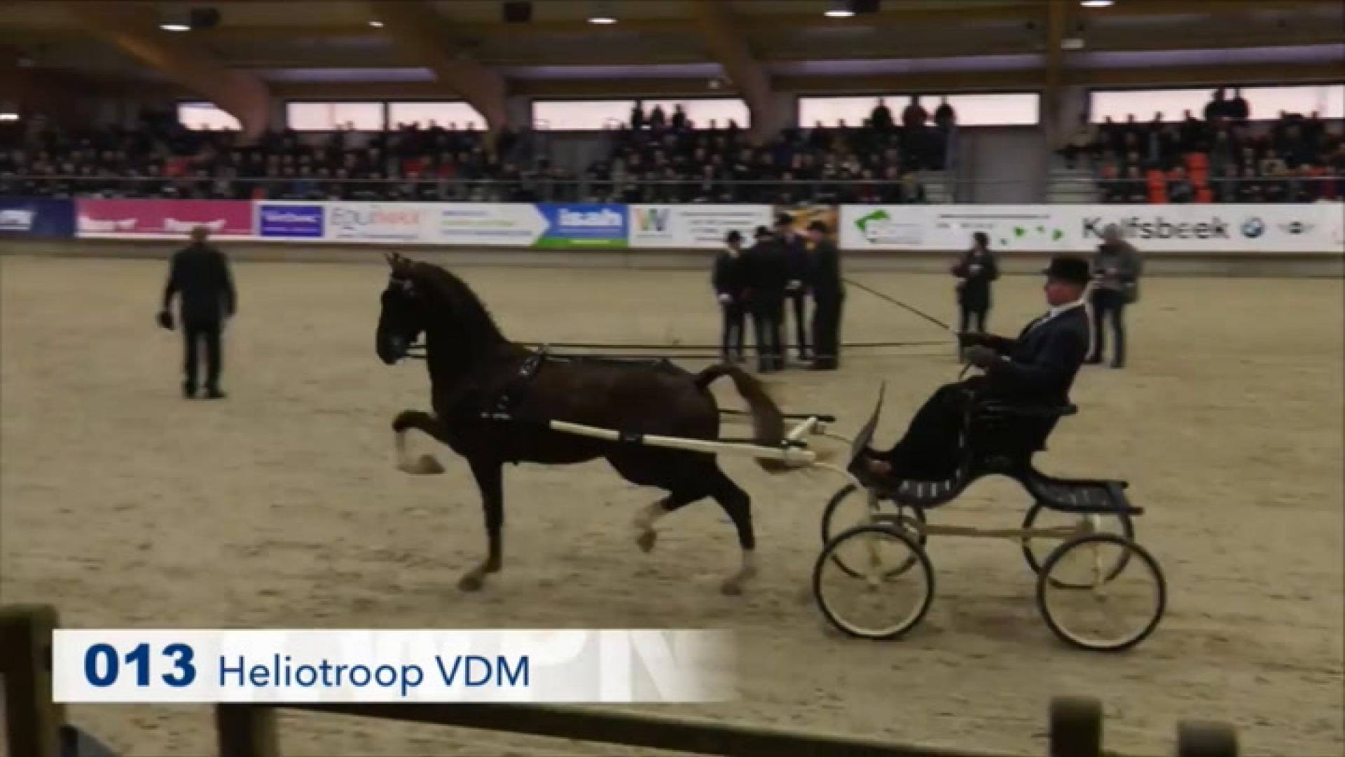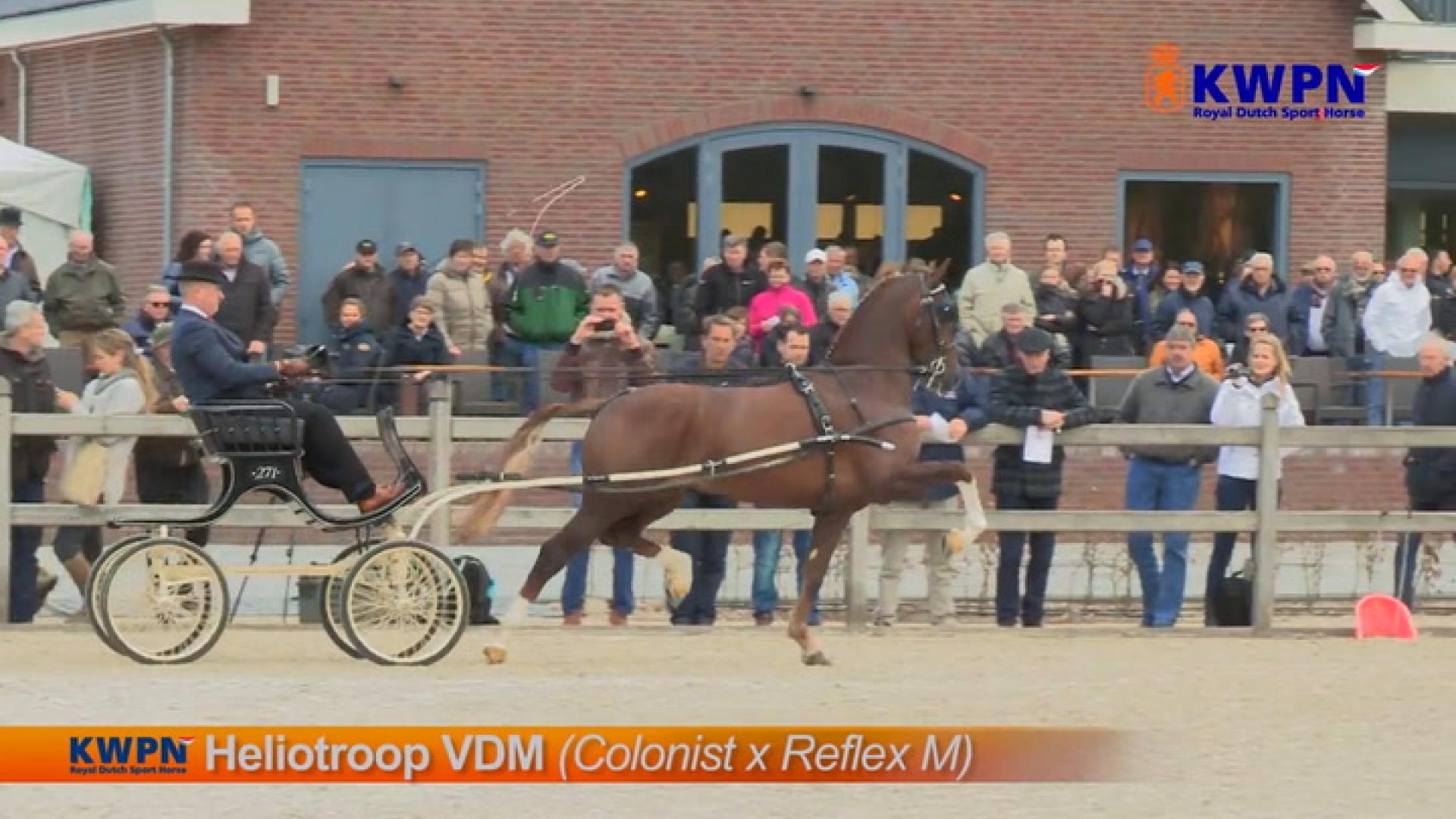 A four-year-old, Heliotroop VDM has already earned points. His dam Wunita produced more Manno daughters, including the ster mare Cunita and the elite IBOP mares Enita and Funita. A prolific winner, Funita boasts more than 50 points and captured the 2014 National Mare Inspection championship in the keur- and elite mares division. One of the most renowned Reflex M daughters is the National Mare Inspection competitor Veldroos, who scored 90 points in the IBOP. Heliotroop VDM's dam-line – the famous Fanita-line – has produced numerous keuring- and show horses. Heliotroop VDM's great-granddam Unita produced offspring including the Dutch champion broodmare Aunita (s.Renovo). Unita is also a great-granddam to Sunlight (s.Manno), a past Harness Horse of the Year and winner of multiple singles championships. The Top Sport Mare of the Year and multiple National Mare Inspection champion Taunita (s.Manno) is another product of this line.