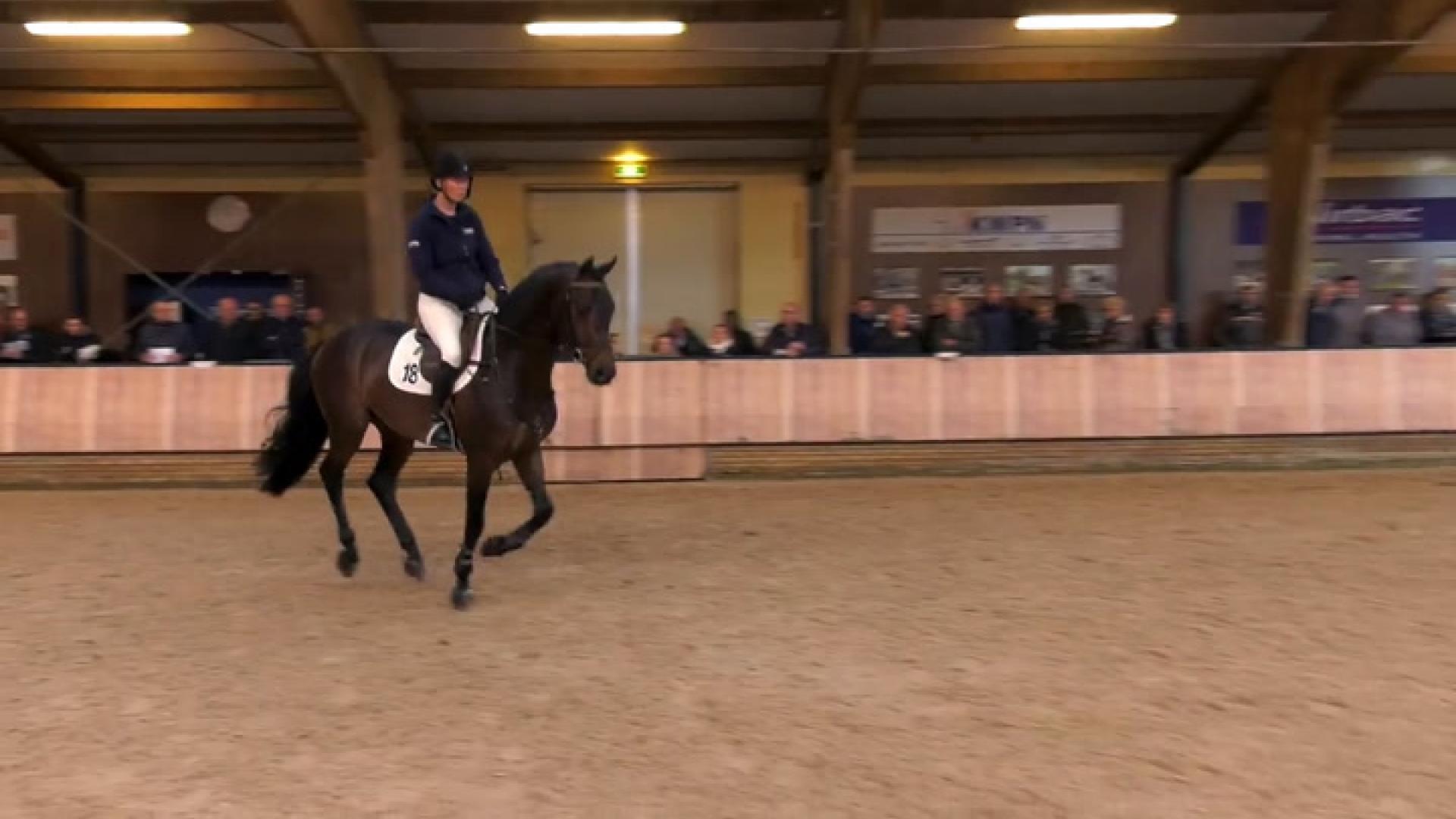 Cantona TN is a honest, reliable and uncomplicated stallion with a good to very good attitude. The stallions has a lot of willingness to work and is very trainable. He has a soft mouth. The walk is of sufficient scope. The trot has sufficient scope with sufficient suppleness too. The canter is lightfooted and of good scope with a easy change of leg. In movement the stallion has a good balance and position. On the jump Cantona TN jumps with the body up and shows good to very good reflexes. The stallion has good technique in the legs, sometimes leaving the front leg a fraction long, with a good completion of the jump in the hindquarters. Cantona TN seems to be careful and shows a lot to very much talent as a showjumper and gives his rider a very good feeling.