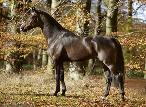 Veterinary report: Ustinov previously participated in the spring test but was referred on to the fall test because of veterinary reasons. At first the stallion showed limited movement in the left hindleg. Through special exercise this complaint disappeared sufficiently.