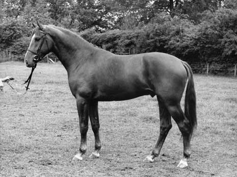 Performance 1987 (tied for 15th place)Friendly, obedient, attentive, happy, honest and rather lazy with an excellent humor. He was green at the beginning of the test. He has a lot of bravura at the beginning of the each day, after this is over he holds back. He collects well and gives his rider a nice feeling. He was longed a few times because he could not be ridden for a few days due to a skin infection. Movements are big and light. The walk is industrious but should have more power. The trot is nice, big and measured. The canter is well carried and full of tact. He shows moderate ability and little suppleness in jumping, He does not use his back well. His cross-country performance is nothing to write home about. He is sufficiently willing to work and the work is easy for him. He has a great deal of talent for dressage, moderate to sufficient talent for cross-country and moderate talent for dressage. He was a little poor upon arrival, received more feed than normal and became more horse. He is calm in his stall.