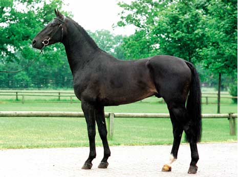 He is a youngish, riding type stallion in good rectangular model. The wither is long, the hindleg is straight, the foreleg is a little under the body.1998