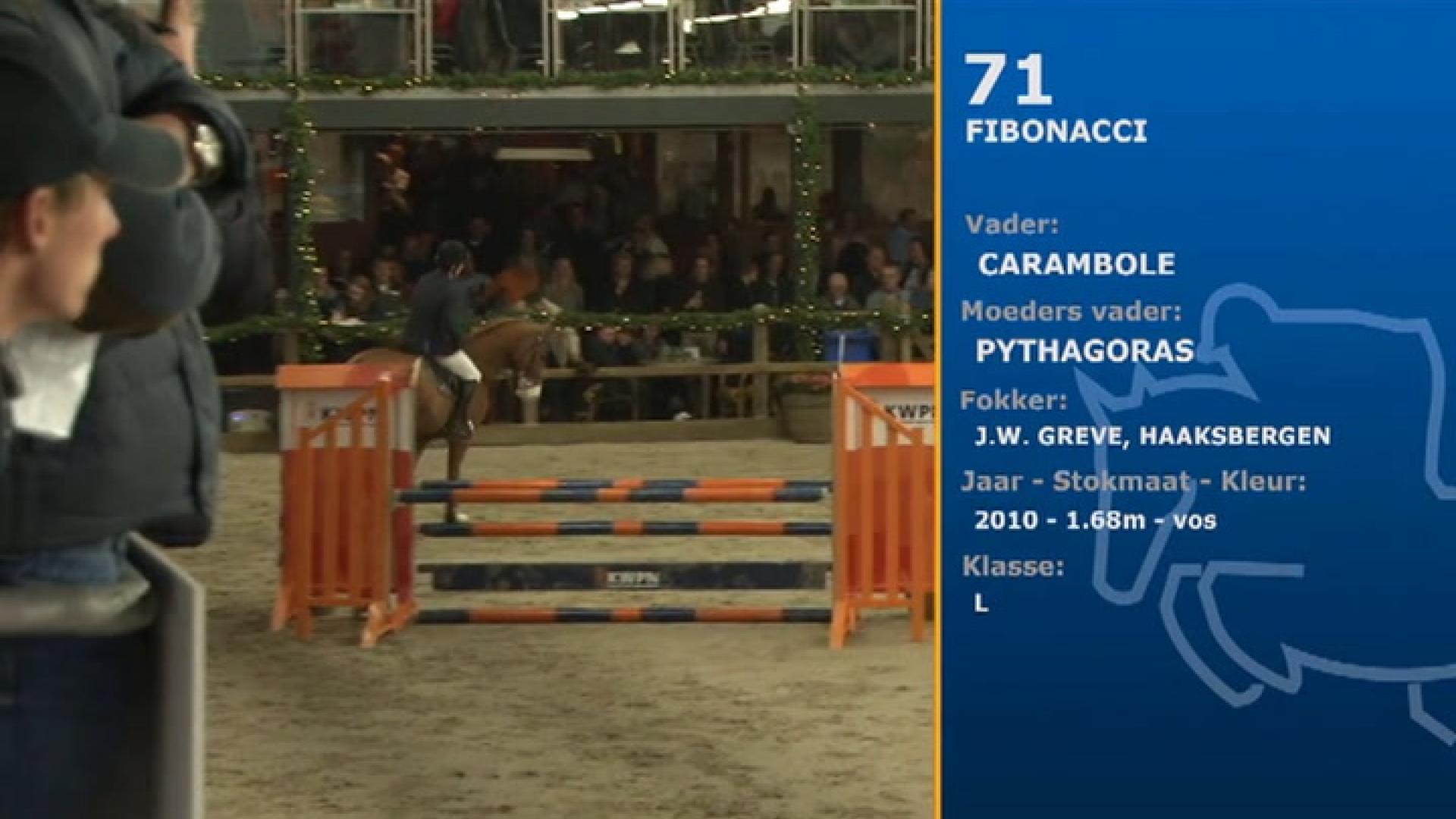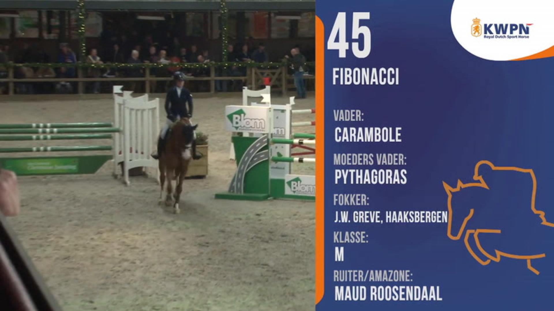 Fibonacci's dam is the preferent mare Waomi, a Pythagoras daughter (Julio Mariner xx out of the Grand Prix mare Kyraleen by Quidam de Revel). Fibonacci's granddam Naomi is an elite mare by Cantus (Caletto I x Roman). Naomi produced an international show jumper by Calvados and the 2009 national champion in free-jumping, Baomi (s.Tjungske). Fibonacci's great-granddam Isolde is by the preferent stallion Voltaire. The dam-line continues with the keur mare Bonelli, an Abgar xx daughter out of the keur mare Anelli (s.Markies).