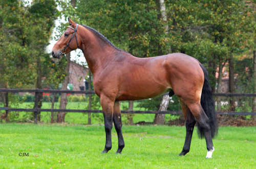 F-one USA is the second KWPN-approved son by Toulon (Heartbreaker x Jokinal de Bornival), who was a very successful show jumper under France's Hubert Bourdy. F-one USA's dam Beat Me (s.Tangelo van de Zuuthoeve), who was sold to England as a youngster, excels in show jumping at the 1.30m level. Her dam Venus, a 1.35m-level jumper, boasts the PROK and sport(jump) predicates. F-one USA's great-granddam Freelady is also known as the celebrated Grand Prix jumper Burggravin, whose sire Burggraaf competed successfully for years under his breeder Roelof Bril. Burggravin proved herself a valuable broodmare, as evidenced by offspring including an international show jumper by Kashmir van Schuttershof as well as 1.40m- and 1.45m jumpers by Nabab de Reve. The dam-line continues with Beauty, a prestatie mare by Le Mexico, followed by Usie, a daughter of the English Thoroughbred Erdball xx.