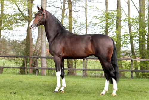 High Five U.S. showed a uniform collection of well-developed foals that fit well into the rectangular model. The foals have more than sufficient charisma. The neck is vertically positioned several times and often comes from deep in the chest. The hind leg stance is varying, generally correct, but also an upright and sickle stance has been established. The walk is correct and good in length. With the at home scored foals the trot and canter was good in length with a lot of elasticity in which the hind leg carries well. With the by the owner selected foals the neck stays a bit vertical in as well the trot as canter, which is at the expense of the use of back and the stepping under the body of the hind leg.Number of registered offspring 2016: 24 fillies, 28 colts