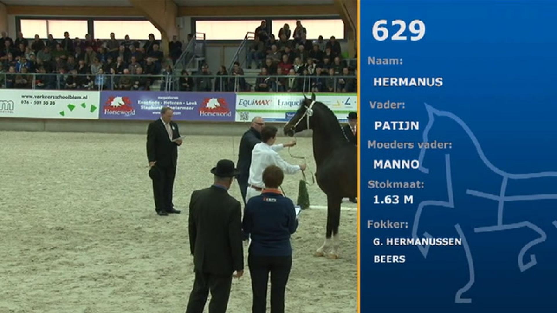 After Artiflex, Atleet, Fantijn and Waldemar, Hermanus is the fifth approved son by the preferent stallion Patijn (breeding value: 161 / 87%). This influential leading sire, who won numerous grand prizes in harness, has topped the breeding values list for many years. In addition to his approved sons, he also produced top inspection horses and many outstanding show horses. In 2013, he was exported to the USA, where he unfortunately passed away in early 2015. Hermanus's dam Biantha V elite is the daughter of another leading sire: the preferent stallion Manno. Biantha V boasts an impressive list of inspection successes: she is a six-time overall champion of the South Central Inspection; the three-year-old ster mare champion of the National Mare Inspection at the National Harness Horse Day event; and the keur/elite mare champion of the National Mare Inspection in 2011 and 2013. In harness, she delivered a top performance in the IBOP, earning a total score of 88.5 points and winning the southern competition. She has accumulated 35 points at competitions. Furthermore, Biantha V has produced five registered offspring. Her dam Niantha keur preferent (s.Renovo), who earned 33 points in harness, has produced excellent offspring - especially when paired with Manno - as evidenced by the selected stallion Alfred V and the second round viewing stallion Famous V, the winner of the 2013 KWPN Championship for three-year-old harness horses. Hermanus's dam-line is extensive and has produced numerous top inspection horses and outstanding show horses. The approved stallion Jackpot is another product of this dam-line.