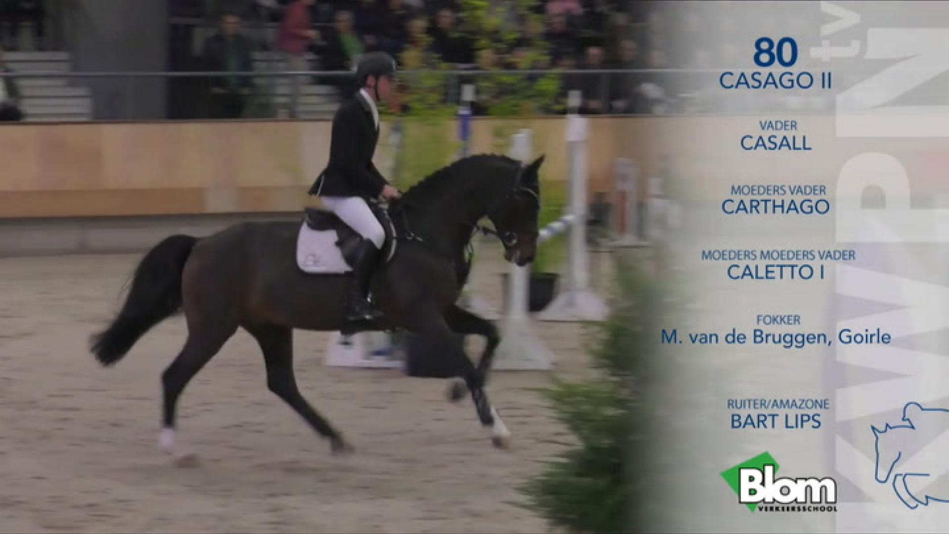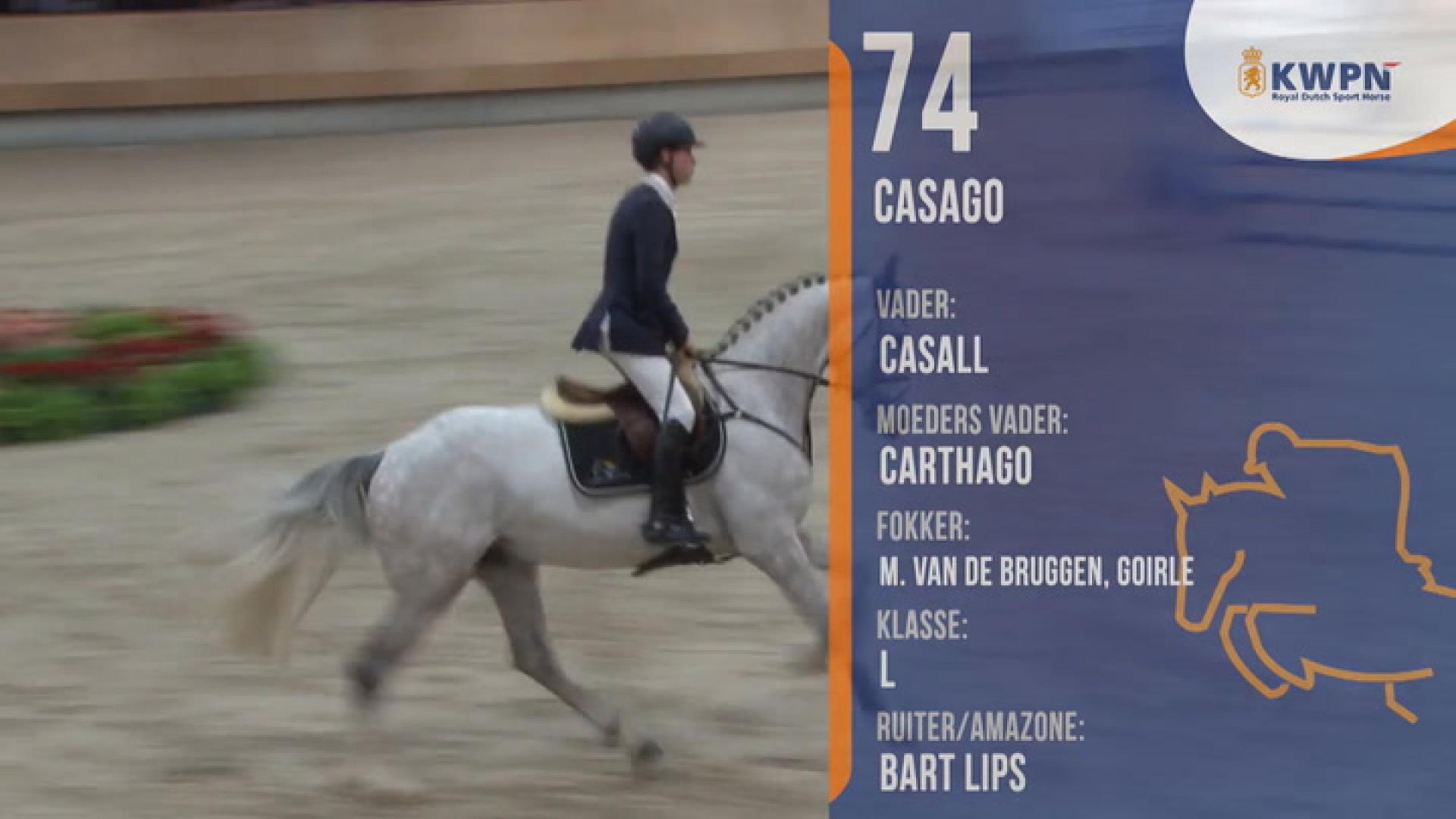 Casago is a son of the top sire Casall out of the prestatie sport (jump) mare Larthago. This mare was a very successful international show jumper under Matthijs van Asten and is now an outstanding broodmare as evidenced by offspring including the KWPN keur stallion Harley VDL, who competed in Grand Prix show jumper under Jessica Kurten. Other Larthago offspring include the Grand Prix jumper Hopes are High (s.Highvalley Z), the 1.50m jumper Cevin Z (s.Coriall), the 1.40m jumper Bruce Z (s.Bachus), and the 1.30m jumper Colinda Z (s.Caron). Casago's granddam Daisy IV, a Caletto I daughter, is the dam of the 1.50m horse Casino 14 (s.Cassini I). The dam-line, which continues with mares by Locarno (s.Ladykiller xx), Kapitaen and Lohengrin, originated in Holstein.