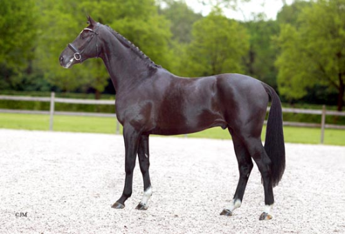 George Clooney is a son of the number one dressage horse in the 2013 WBFSH sire ranking, De Niro (Donnerhall x Akzent II). This stallion is out of Wallone, a daughter of the Weltmeyer son Wolkentanz. Wallone boasts other De Niro offspring, including the international Grand Prix dressage horse Delmar 3, ridden by Germany's Peter Brenske; and Despino 15, a national Grand Prix horse in Germany. George Clooney's granddam Fricka is a daughter of the English Thoroughbred Forrest xx. Fricka is also the granddam of Don Johnson FRH (s.Don Frederico), a successful international Grand Prix competitor under Isabel Werth. The dam-line continues with daughters by the Hanoverian stallions Western Star, Wendelin I, and Wohlklang.
