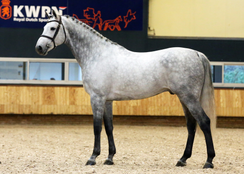 Conformation:Jager is a well-developed, appealing stallion with a good rectangular model. The head is expressive. The neck has good length with a correct head-neck connection. The neck has good shape, good length and more than enough muscling. The shoulder has more than sufficient length and a slightly straight position. The withers are well developed and of sufficient length. The back is slightly sunken, is of good length and a bit poorly muscled. The loins are sufficiently muscled and sufficiently connected. The croup has a good position but should have more length and muscles. The hamstring should be longer. The foreleg is correctly adjusted when viewed from the side and slightly toed-in when viewed from the front. The hindleg is correctly positioned. The pasterns are more than sufficient in length and are straight. The foundation is sufficiently developed and of good quality. The hooves are more than sufficiently developed, a bit different in shape with more than sufficient quality. The heels are more than sufficiently developed.