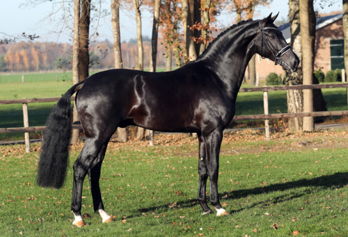Kingston Blue Hors his grandfather is the well-known black dressage legend Totilas (by Gribaldi), who was almost invincible at the highest level in the sport under Edward Gal. Totilas and Gal were European champions, won the WEG in Lexington and the World Cup in Den Bosch. His son Glock's Toto Jr. won the Pavo Cup when he was five years old and from his first year of offspring he already has his third son approved with these Kingston Blue Hors. Kingston Blue Hors dam Arina elite EPTM-dressage PROK is a daughter of Turbo Magic, a son of the Keur stallion Cabochon. Arina produced a Z-dressage horse from Houston and her mother Sarina elite preferent sport-dressage PROK is a daughter of the preferent Flemmingh. She is a half-sister of a Z-dressage horse from Bergerac and a 1.30m showjumper from Faldo. This dam line includes a ZZ-Heavy horse from Burggraaf as well as various Z-dressage horses.