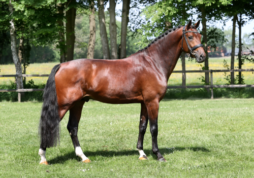 Kayne (Governor x Rousseau x Krack C)Kayne showed a collection of more than sufficiently developed riding type foals, with appearance. The head is expressive. The neck is more than sufficient in length, well-formed and more than sufficiently muscled but comes a little deep out of the chest. The back is well formed, the loins are well connected and a little tight. The croup usually has more than sufficient length and a good position. The foreleg and hindleg are correctly adjusted, occasionally the pastern is slightly weak. The walk has sufficient space and should use more body. The foals have more than sufficient space in the trot with good tact and posture. Some foals should show more use of the back. The foals canter with more than sufficient to good space, impulsion and strength. The foals could also show more use of the back in canter.