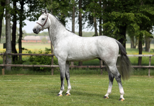 Kannan JR (Cornet Obolensky x Quick Star x Voltaire)During the offspring inspection Kannan Jr showed a collection of foals who varied in development and type. The foals assessed at home are average, well-developed, well-modelled foals who are in a good rectangular model. The head-neck connection is sometimes a bit heavy. In some cases, the neck should have a bit more length and the neck direction is also variable, several necks, both vertically and horizontally have been observed. The foals often have good shoulders. The top line is correct with a good connection to the croup which is sloping several times and sometimes needs to be longer. Viewed from the side, the foreleg is correctly adjusted with sometimes a slightly straight pastern position. The hindleg is varied, mainly correct, but foals have also been assessed who have a straight or sickled hindleg. The walk is more than sufficient in space and occasionally the front leg is toed-out. The trot is functional, sufficient in space and more than sufficient in elasticity and impulsion. The foals selected by the owners had trouble with cantering, probably because of tension, because the home scored foals by Kannan Jr generally cantered well with good space, good elasticity and good balance.