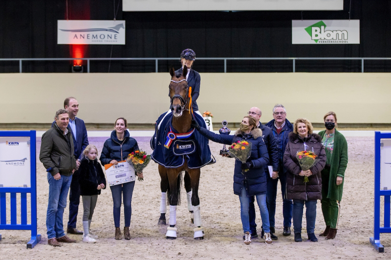 Jill Bomers could line up as third with Lennox U.S. (Grand Galaxy Win out of Herarona elite IBOP-dres D-OC by Rousseau, bred by Bas Wilschut of Bosschenhoofd). “A charming combination and an elegant image. The stallion is very obedient and focused on his rider. The submission is lovely, they received 95 points for it.” In total, Lennos U.S. scored 87 points in the final and 336 points in the entire competition.