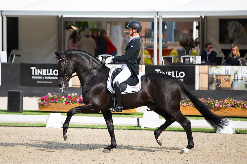 Bart Veeze and Imposantos (Wynton out of Zarina elite PROK IBOP-dr s.Krack C, breeder W. Wijnen) broke their personal record with a score of 75.098%. The combination is now in the lead in the championships. In hot pursuit is Dominique Filion on the second KWPN-stallion Dettori. The Desperado-son (out of Diamond Eye s.De Niro, bred by S. Tietje) also bested their own score with 74.510%.