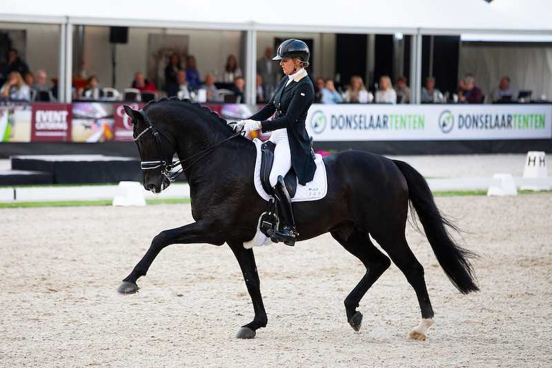 Emmelie Scholtens and Desperado N.O.P. (Vivaldi uit Sarita elite D-OC pref prest v.Havidoff, gefokt door familie Andeweg) emerged as clear winners with 79.304%. A strong test that convinced the jury to unanimously place them in the lead.