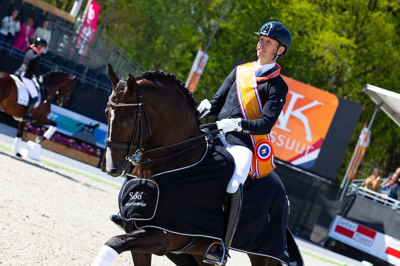 After a win in the first leg, the dayprize also fell prey to Bart Veeze and KWPN-stallion Kyton (s.Ferguson). And that meant the pair were undeniable in their quest for gold. The silver medal was claimed by Mariek van der Putten aboard Kuvasz RS2 (s.Glamourdale), just ahead of Renate van Uytert-van Vliet that steered the second KWPN-stallion to the podium: Johnny Depp (s.Bordeaux).