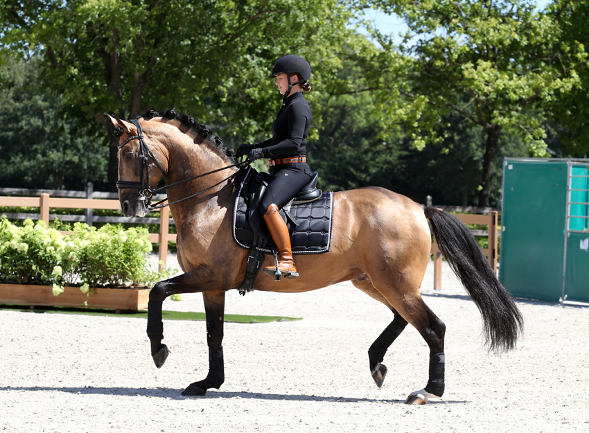 Both Bert and Jean have experienced an Iberian horse needs a little more time to mature compared to the average warmblood horse and in the beginning phase it takes them longer to develop strength. Jean: “They always offer you so much, but I have occasionally thought of these young horses: ‘they’re not that special’. To then, a few years later, see them again and be completely surprised to see a totally different horse.” Bert adds: “Especially developing suspension in the trot demands the attention. It is difficult to change the walk and canter, but the suspension in trot is something that can be worked on. It is important to ride them low and deep, to maintain that length in the body and length in the strides. In that respect, I believe there is very little difference in training an Iberian horse or a warmblood. Under saddle, this Nachtwacht is a more elegant horse than in hand. He possesses a correct walk and good canter, in which he needs no velocity.” Jean: “Plus, he acts as if he’s here every day. That’s a quality trait, too!”