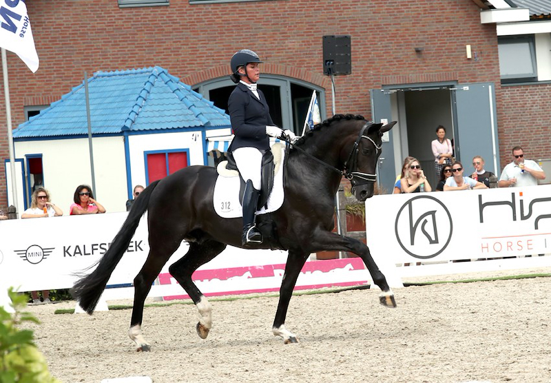 In close third was the approved stallion My Blue Hors Santiano (Sezuan out of Romanik byRomanov, breeder Straight Horse APS of Alleroed) ridden by Renate van Uytert-van Vliet. The KWPN-approved Galleria’s Mister Maserati, Bloomberg, Mexpression and Mister Diamond also qualified for the final.