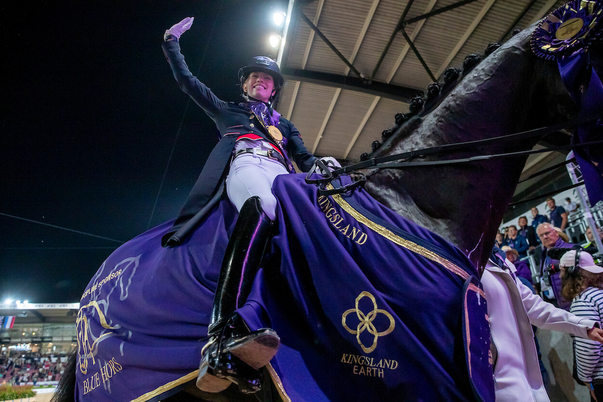 A packed stadium, an exhilarated audience, and the best dressage horses in the world. A must-see for every dressage enthusiast. After the silver team medal of the British KWPN-team, the golden medal of Glamourdale and bronze of Hermès in the Grand Prix Special, these two dressage stars again danced to the podium tonight.