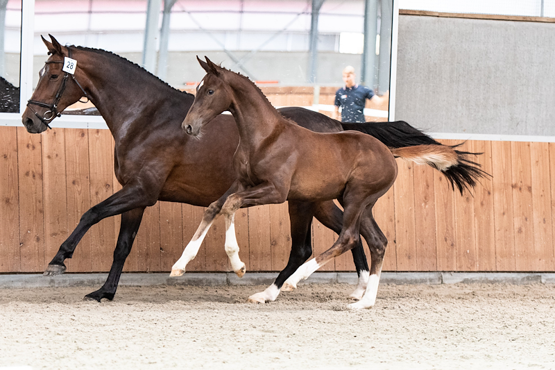 The jumper foals are equally promising. The colt Shorse Claris (Zirocco Blue x Numero Uno) originates from a sports lineage that starts with a 1.40m dam while colt Sjarrera (Carrera VDL x Clinton) is bred out of a half-sister of the Grand Prix showjumpers Skik (s.Manhattan) and USA (s.Lux). The granddam of Grand Prix horses Dyranta v/h Rhen (s.Kashmir van Schuttershof) and RR Bellerose (s.Kashmir van Schuttershof) is also the second dam of filly Savanta van ‘t Kattenbos (Hardrock Z x Odermus R) and the pedigree of the filly Sabine D (Opium JW van de Moerhoeve x Londontimes) consecutively boasts three mares that jumped at 1.30m level or higher.