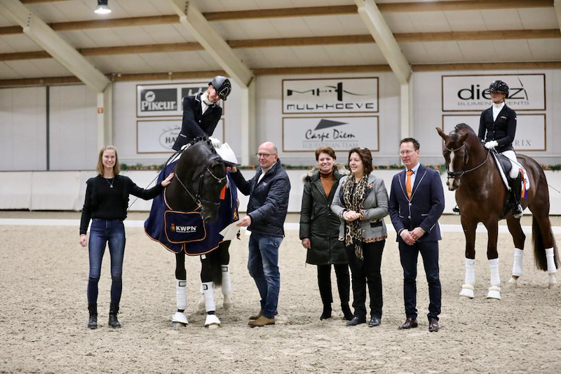 “A talented horse that was presented very well”, comments Janine van Twist on the performance of Dark Rousseau and Kim Alting. “The walk is good, but could be more swinging in the back, an 8,5. We give a 9,2 for the trot. We notice a lot of balance and push, especially for a four-year-old, and Dark Rousseau showed us beautiful transitions and lateral movements. The canter has great balance and a powerful jump, an 8,7. We reward the submission with a 9. The stallion is soft in the contact and wonderfully focused on the rider, those beautiful transitions impressed us every time.” Receiving an 8,9 for overall impression resulted in an overall score of 88,6 points and thus the victory for Dark Rousseau (Dettori out of Westside ster PROK by Rousseau, breeder H.G.A. Verdellen of Hegelsom).