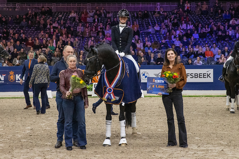 Nalegro (Painted Black out of Jalegrofleur ster PROK by Negro, bred by van Olst Horses of Den Hout and Joop Hanse of Burgh-Haamstede) emerged as the runner-up in both the final and the overall competition standings. Ridden by Charlotte Fry, the stallion commanded intrigue with his abundant power. The canter was awarded a 9,5 and the score in the final test added up to 87,4 points.