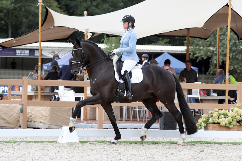Like the judges in the semi-final and final test, Daniel Bachmann Andersen expressed his enthusiasm about Mac Toto (Glock’s Toto Jr out of Turjazzila keur pref prest sport-dres by Jazz, bred by Gerrit van de Laar). “The quality of this horse is amazing”, he explained. “I really like this horse. He has a lot of power, and you can feel it sometimes in the contact, he gets a bit too strong. I don’t think of it as a negative sign though, I think that will become easier as time and his education progress.” Danielle is thrilled with the victory of the gelding that she owns together with Stal Brouwer and Joop van Uytert. “It has not fully dawned on me, but I have so much faith in this horse. He has a great mindset and always wants to give it his all in the ring. He is so level-headed, yet still has the right sensitivity when working.”