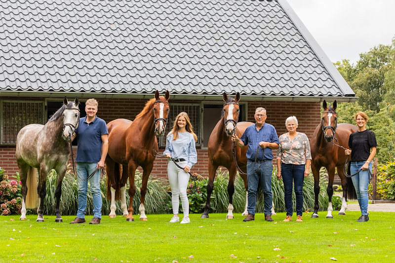 Since then, daughter Janine van den Berg has trained several breeding products to the 1m30/1m35 level and qualified for the second time for the World Breeding Championships for Young Horses in Lanaken with the Dallas VDL son Lutalo TK. The breeding results achieved are remarkable, especially considering that the Ten Kate family only has one foal born per year. As an amateur rider, Janine van den Berg-ten Kate has achieved commendable results, and her daughter Daphne (17) is already following in her footsteps. ‘Grandpa and Grandma’ Jan and Hilly ten Kate are known as breeders of talented showjumping horses, all of which trace back to the foundation mare Ofieterma. They all enjoy their shared horse hobby together.