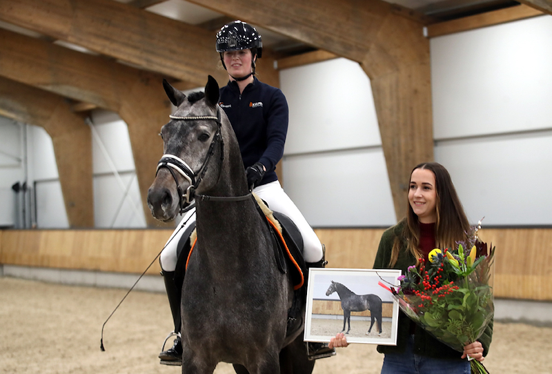 In the case of Proud James (Jameson RS2 out of Cyraniek elite PROK by Johnson, breeder Yolien van Maasacker) from Andreas Helgstrand, this was the last examination in which the stallion inspection committee assigned scores. Proud James achieved a historic score with a perfect 10 for posture & balance, along with 9s for all other components. Bert Rutten commented, "This grey stallion has incredibly good balance, very good movement technique with a well-engaging hind leg, an uphill tendency, and a fantastic character. He is very trainable and light-footed." Proud James is also the half-brother of the KWPN-approved Small Tour stallion Inverness (s.Everdale).