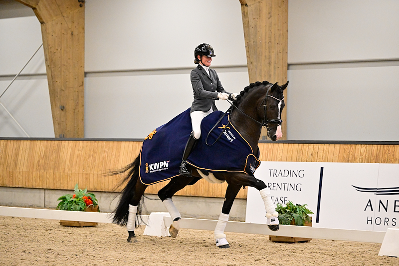 He plays with the canter work." The stallion received a 9.5 for his canter. "Nalegro moves with ease through all three gaits, shows the ability to switch, and remains beautifully in length. The stallion has a lot of potential for the future; we think that's entirely in order." With a ten-point difference in the interim standings, Network (out of Keyveniz Texel stb-ext pref D-OC by Negro, breeders D. Staller and D. Broekema from Westbeemster) and Femke de Laat follow in second place. Network shows a lot of enthusiasm and good use of the hind leg. The final may seem like a foregone conclusion, but everything still has to happen in Den Bosch.