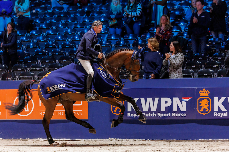 Tonight, Aganix du Seigneur's son Lambada Shake AG claimed the final event of Thursday's KWPN Stallion Show. As the last starter in the jump-off, the stallion, ridden by Pieter Keunen, delivered a fast faultless round, securing the VHO Trophy.