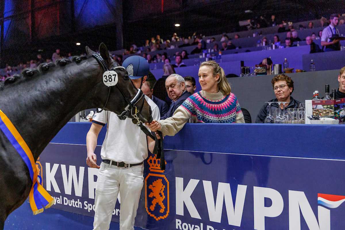 In dressage, it was a reunion with the Secret-son Pride, bred from the full sister of world champion Jovian (s.Apache). This stallion was awarded a premium last year at the KWPN Stallion Show and the breeding product of the Ten Bosch family is now registered under the name of H.G. Lang from Frankfurt. This German bought Pride at the KWPN Select Sale for 200,000 euros. In the performance test, he was praised for his work ethic, use of body, and ability to collect. This year, the Glamourdale-son Rayano (dam's sire Cum Laude), bred by Belgian breeder Herwig Verthriest, was the auction topper at the KWPN Select Sale. He was acquired for 130,000 euros by Stephan Hirdes and Kim van der Muren. This premium stallion showed his talents under saddle in the performance test and impressed greatly with his attitude, focus, leg technique, and impulsion.