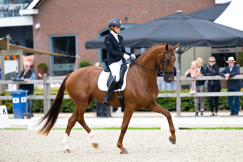 Kjento daughter Patchouli Vera (out of Kiara elite IBOP-dressage PROK by Bordeaux, breeders Florine de Voogd and Veerle Boogaard from ’s-Heerenhoek) achieved the highest IBOP score of the year last year. Under Annemijn Boogaard, the mare received a 9 for her walk today. "This is a very large-framed, elegant horse that showed a very harmonious performance. She has a lot of balance and ease in her movement, everything seems to come effortlessly to her, she is willing to work, and she stays well-focused on the rider. This mare possesses a lot of light-footedness and natural balance. She has an incredibly beautiful walk that remains very pure even when transitioning to a working walk, maintaining good rhythm and space."