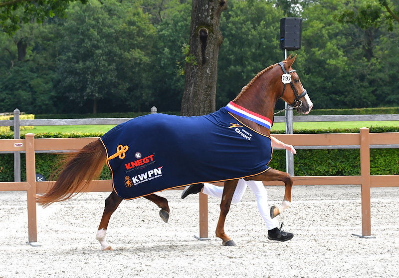 Pleasure (by Kardieno) out of elite mare Wodine (by Larix). A mare with much flair and excellent leg technique, moving uphill and always in the correct posture. She was bred by father and daughter, Chris and Heleen de Bruijn from Wijk bij Duurstede. Marloes van der Velden explained the jury's choice: “This mare fits well within the Gelder horse type, a modern mare with beautiful leg technique. In motion, she also shows a lot of body use, and she can step very nicely.” Chris commented, “She presented herself very well, but it all has to come together in the ring. We didn't dare to expect this, but we certainly hoped for it, and it turned out well!”