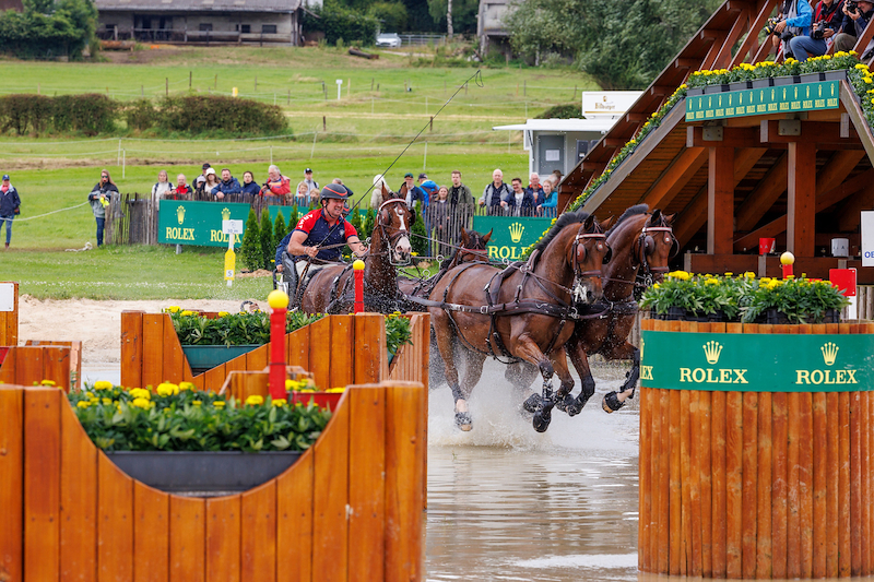 "My horses have been here since the end of April for training. I travel back and forth a lot, but most of the time, I’m here. My team competed in their first event of the season from April 30 to May 5 in Windsor, England. My plan was to take them to another event, so they could get off the property, and the National Harness Horse Day was ideally suited for this. I was very pleased with how they performed there. They were very relaxed and happy in the arena. I think it’s very important to keep the horses happy and relaxed in the lead-up to a big championship. And yes, it remains a challenge to keep them all in top shape."