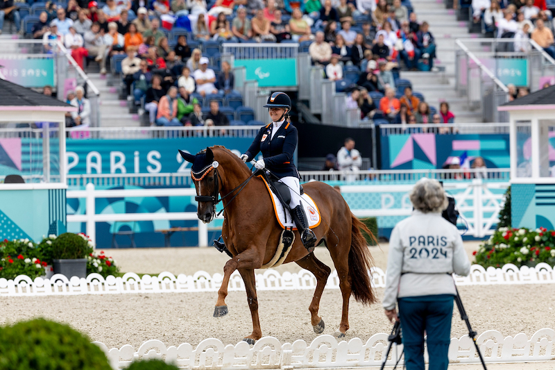 Paralympic debutant Demi Haerkens wins gold in the Paralympic freestyle after individual gold and team silver. Riding her elegant and light-footed EHL Daula II N.O.P. to a new freestyle, she achieved a world record and a personal best score of 83.840%. Sanne Voets and Demantur RS2 N.O.P. finished just outside the medals in fourth place.