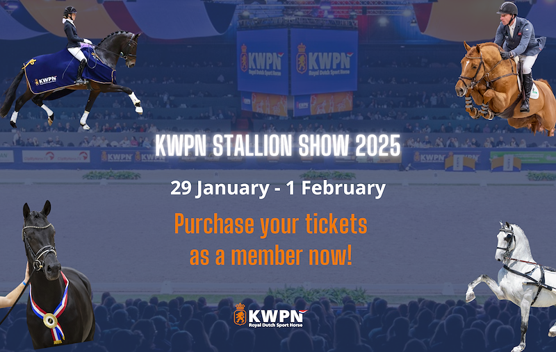 Exclusively for KWPN members, ticket sales start today at 10:00 AM. You’ll have the first choice of the best seats. As a member, you’ll also benefit from a membership discount on your tickets. To activate the discount, simply enter KWPN + your membership number at checkout. In addition to the membership discount, you’ll receive an Early Bird discount if you purchase tickets before January 1, 2025. Ticket prices have been reduced to make the KWPN Stallion Show more accessible. We hope to welcome you to Den Bosch!