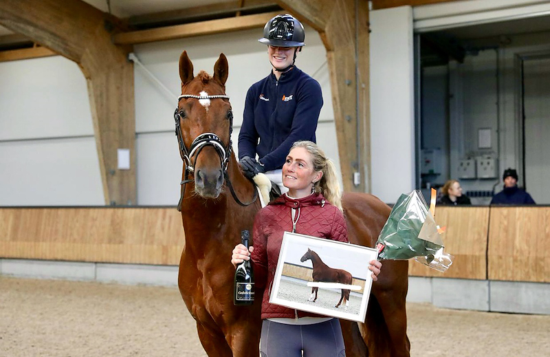 Bred by Anouk Noordman, Royal King (King Karim out of the Grand Prix dressage mare Zeronica elite sport-dres PROK by Talos) successfully completed the fall performance test. During today’s final presentation, he performed both outdoors and indoors under saddle and even showcased a few jumps with his rider. In the Gelder breeding direction, stallions in the performance test are still awarded scores, and this three-year-old excelled with 9s for his canter, outside riding, and rideability. “Royal King is a youthful stallion with a clear Gelder type and has demonstrated a balanced, consistent performance,” explained committee chair Marloes van der Velden. “He has a strong work ethic, gallops with excellent use of his body, shows eagerness and aptitude in jumping, and impressed outdoors with his focus, outstanding attitude, and dependable character.” Royal King’s outstanding performance positions him as a valuable asset for the Gelder breeding program. The complete report will be published in the KWPN Database.