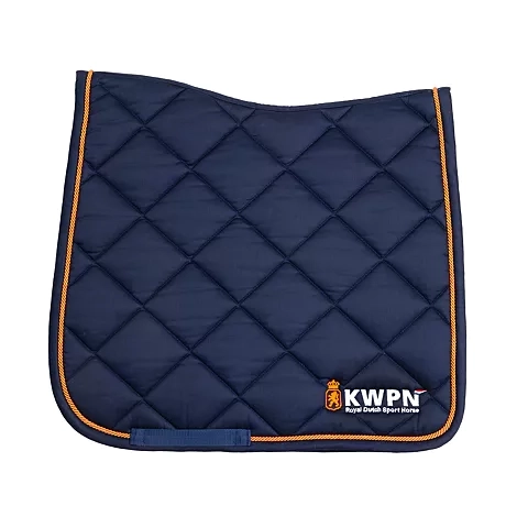 Elegant saddle pads for both dressage and show jumping are also available. The anatomical design ensures an optimal fit, preventing pressure points while riding. The breathable, moisture-regulating lining keeps the horse dry and comfortable, even during intense training sessions. Subtle KWPN branding and a sophisticated quilted pattern give the saddle pad a professional look. Additionally, girth loops provide extra stability and a perfect fit under the saddle.