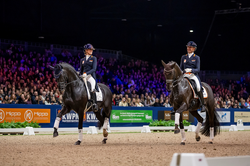 Bronze medalist GLOCK’s Massimo made a strong impression tonight, along with the fourth-place finisher at the World Championships: the KWPN stallion Mauro Turfhorst (Zonik out of Hidaylia ster by Negro, breeder J.W. Greve from Haaksbergen). These two stallions have also made excellent progress since last summer. Massimo danced through the arena in passage under Hans Peter Minderhoud, stepping well underneath himself. The two-tempis and one-tempis posed no challenge. Mauro Turfhorst and Dinja van Liere displayed great balance in their well-established piaffe and passage work, with the stallion moving happily through the ring with his ears pricked forward.