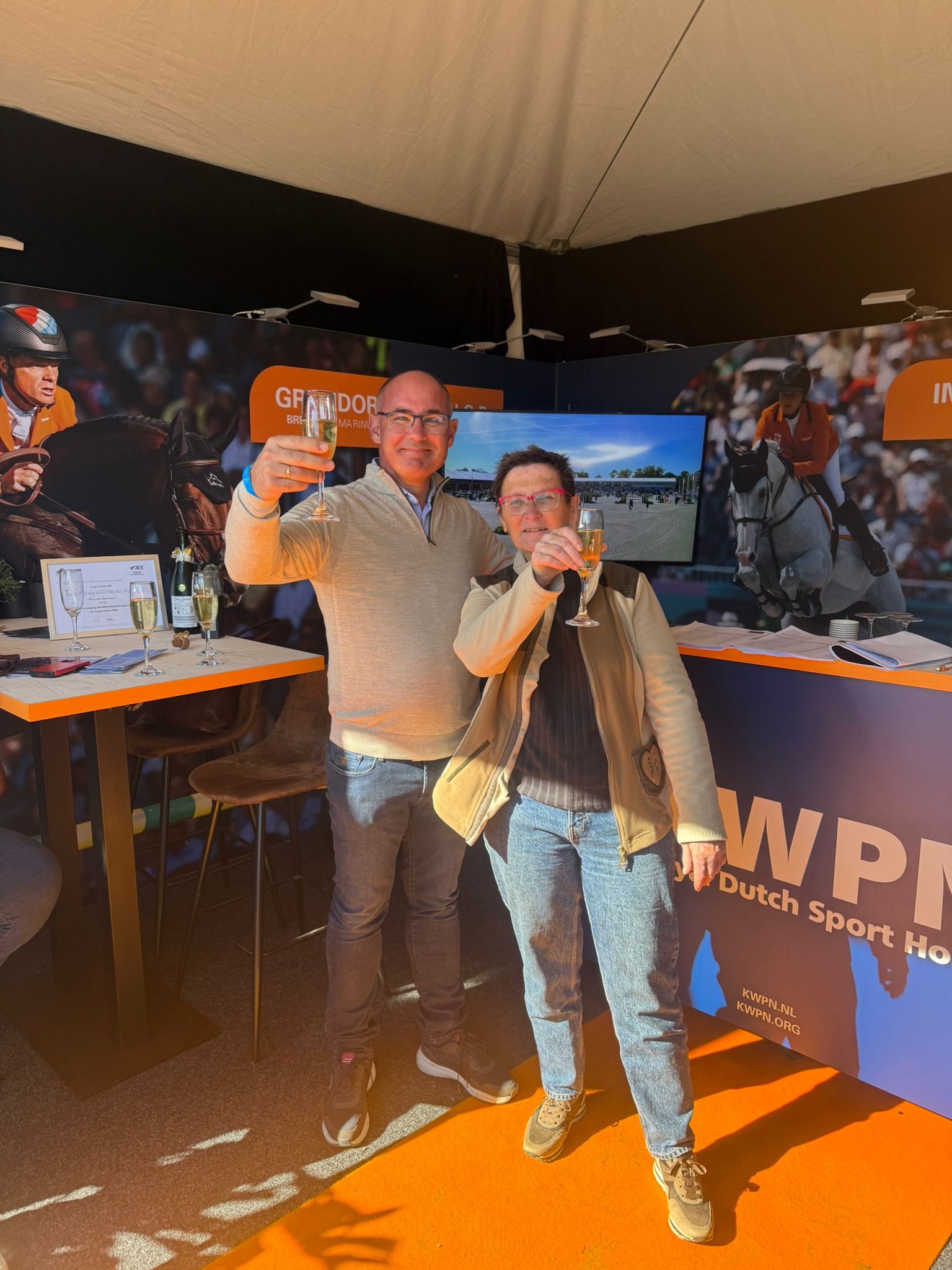 KWPN inspector Henk Dirksen and co-breeder Hellen Versteeg were on hand to toast the golden victory.