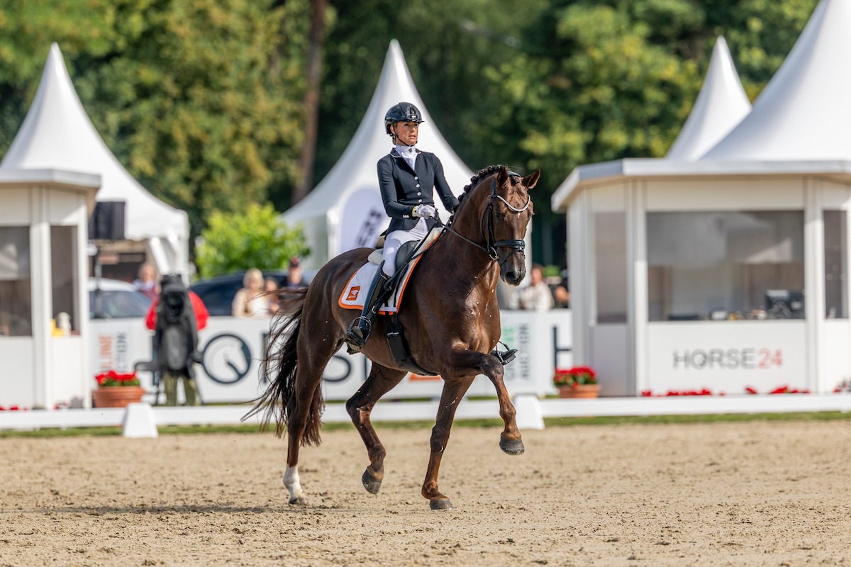 The nine-year-old Luxuriouzz v/d Waalsehoeve, competed as Hexagons Luxuriouszz N.O.P.T. under Thamar Zweistra, has shown strong development this year on the international Grand Prix circuit. The pair achieved several top-three finishes on home soil, including at CDI3* ’s-Hertogenbosch, CDI3* Exloo, and CDI3* Rotterdam. At the European Championships in Crozet, the chestnut gelding made his debut for the Dutch team, which finished fifth. As a five-year-old, he competed at the World Championships for Young Dressage Horses with Benedek Pachl, where he claimed the bronze medal.